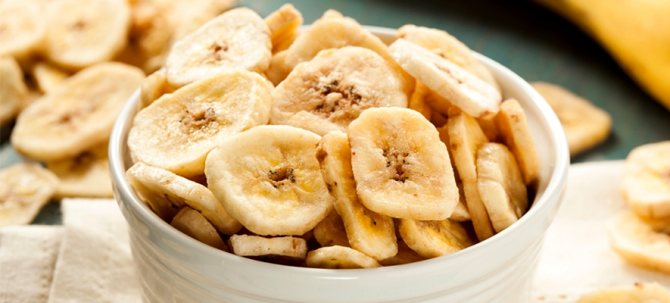 Что еще можно приготовить из потемневших бананов? Простейшее лакомство, которое оценят дети – это натуральные чипсы. Порежьте фрукты кружками толщиной до 5 мм, разложите на противень и отправляйте в духовку. Выставьте невысокую температуру 100-110 градусов и оставьте 6-8 часов. Дверцу оставьте слегка приоткрытой для свободной циркуляции воздуха. Банан не подгорит, а тщательно просохнет. Каждые пару часов процесс нужно контролировать – готовьте банановые чипсы, пока из фруктов не выйдет влага.