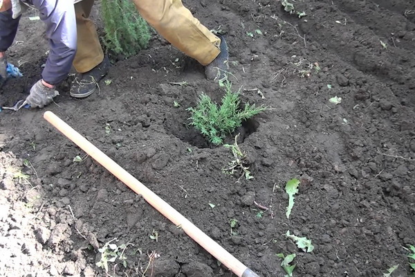 Можжевельники высаживают в яму, размеры которой в 2-3 раза больше земляного кома. Для больших кустов глубиной должна быть не менее 70 см. На дне ямы нужно сделать дренажный слой из битого кирпича и песка толщиной 15-20 см. Почва состоит из торфа, дерновой земли и песка в соотношении 2:1:1. Крупные растения высаживают так, чтобы корневая шейка была на 5-10 см выше краев посадочной ямы. У молодых растений она должна находиться на уровне земли. Для можжевельника казацкого полезно известкование — перед посадкой на тяжёлых почвах вносят доломитовую муку или известь-пушонку (80-100 г на яму размером 50х50х60 см). Поливают можжевельники лишь в засушливое лето 2-3 раза за сезон. Норма полива 10-30 л на взрослое растение. Раз в неделю его можно опрыскивать, обязательно в вечернее время.