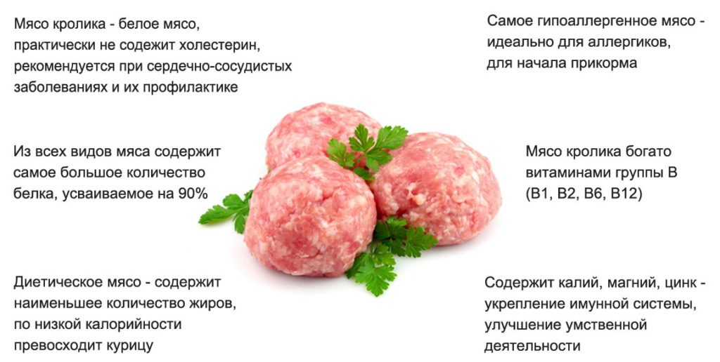 Мясо кролика служит источником животного белка, к тому же легкоусвояемого, что очень важно для растущего организма. По содержанию белков с ним не может сравниться никакое мясо другого вида