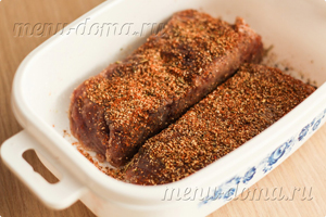 -5- Натрите кусочки мяса со всех сторон ароматной приправой. |