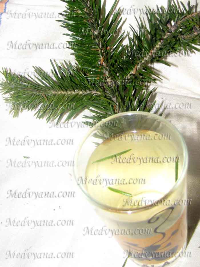 Из хвои делают крепкий отвар, процеживают и остужают. Далее добавляют остальные ингредиенты. Продукты тщательно смешивают до получения однородной массы.