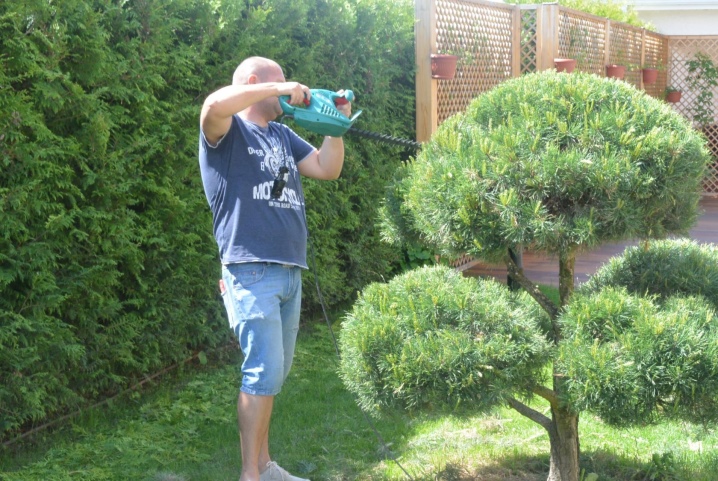 Обрезка центрального проводника сосны — чтобы не росла вверх — характерна для сортов с конусовидной кроной. Это помогает несколько сдержать скорость и интенсивность набора высоты. Также подобный приём обеспечит стимулирование образования боковых побегов. С этими же целями крону — чтобы была пышной в период активной вегетации — в мае подвергают прищипыванию: удаляют молодые побеги в объёме около 1/3, вручную. Такая обработка замедлит рост вершины и позволит направить основные силы растения на ветвление.
