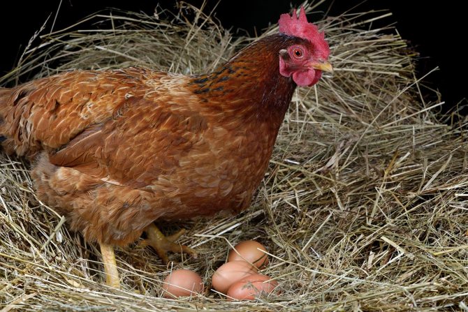 Несушки мясных пород имеют большие размеры и часто окрашены в красный или коричневый оттенок. Такие птицы дают продукцию с коричневой оболочкой.