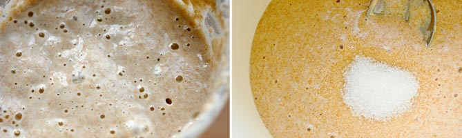 Оживленные сухие дрожжи разводят в тёплой воде – 1 часть дрожжей на 4 части воды, оставляют на минут десять, а после перемешивают и ждут ещё какое то время.