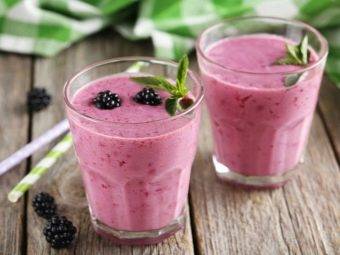 - Продукт можно употреблять сразу, а можно поместить все ингредиенты в чашу блендера и взбить. Украсить смузи мятой и орешками.