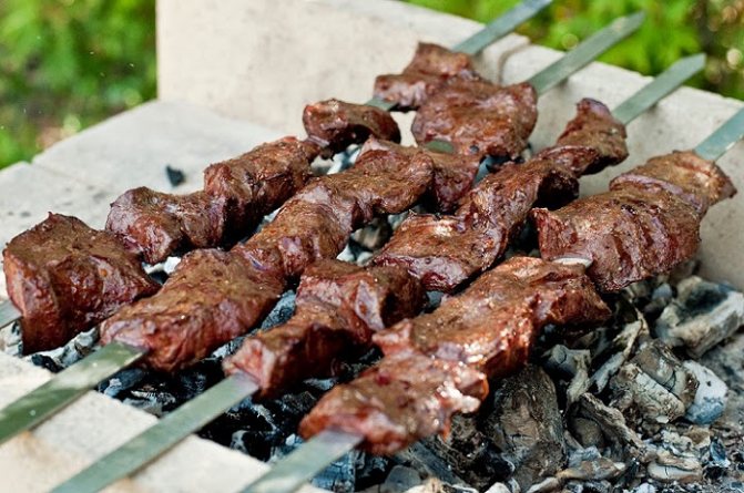 - заготовки выложить на сетку для мангала и обжаривать, переворачивая каждые две минуты.
