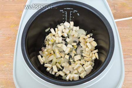 2. К овощам добавляем грибы, все перемешиваем. Если грибы свежие, то их нужно предварительно очистить, помыть и немного потушить отдельно в небольшом количестве воды.