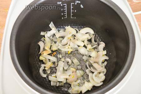 - Режем лук полукольцами и обжариваем до золотистого цвета.