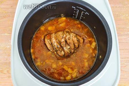 5. Запекаем свинину в течение 13-16 минут при 200 градусах, после вливаем маринад, убавляем градусы до 160, томим еще 10 минут.