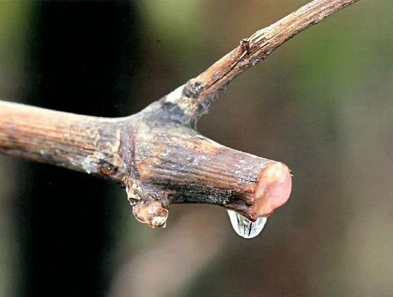 Выделение этой жидкости не должно вызывать опасений. Ведь этот процесс показывает, что корни после зимних холодов отлично справляются со своей задачей, и лоза получает все необходимые вещества из почвы.
