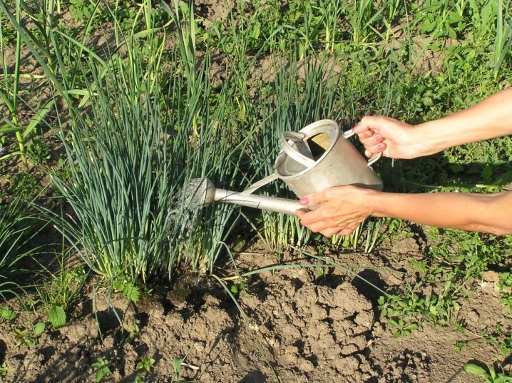 В процессе ухода за луковицами понадобится периодически увлажнять субстрат и опрыскивать зелень для улучшения ее товарного вида. Но делать это нужно так, чтобы влага не попадала непосредственно на головки. Удобрять севок необязательно, но можно периодически добавлять в воду для полива древесную золу.