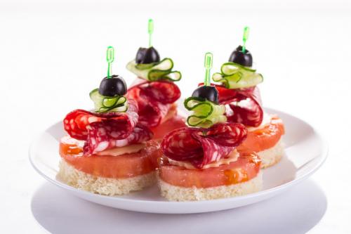 Канапе – это очень маленькие бутерброды, которые можно не откусывать по кусочку, а отправить в рот целиком. Чаще всего это фуршетное угощение, которое берут руками. Подаются они, в основном, к легким коктейлям и вину.