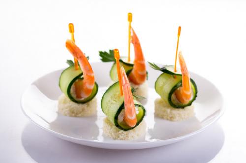 Яркие, аппетитные и оригинальные канапе с креветками на шпажках непременно одобрят любители морепродуктов. Благодаря мягкой консистенции сливочного сыра, эта закуска имеет нежный вкус, а огурцы добавляют канапе необходимой свежести и хрусткости. Все ингредиенты великолепно сочетаются. Такие канапе встречаются в меню ресторанов, но их без проблем каждый сможет приготовить в домашних условиях.