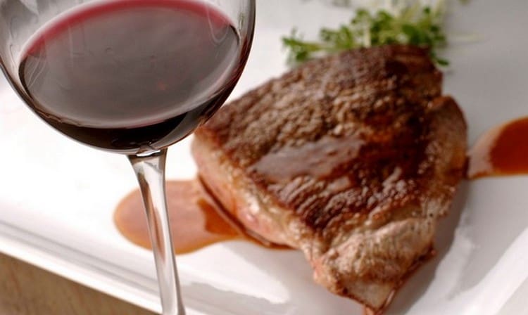 В народе эти сорта еще называют «мясными». Это связано с тем, что красное вино сочетается с многими видами мяса, преимущественно красными. Данный напиток считается более тяжелым. По этой причине его подают с острыми блюдами, шашлыками. Мясо должно быть жареным или печеным. При его отсутствии хорошим выбором винной закуски выступают супы. Уместными остаются сыры, но не жирных сортов.