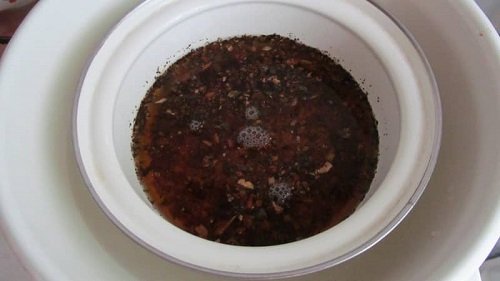 - После тщательного перемешивания следует в жидкость опустить грецкие перегородки, чайные листки и гвоздику.