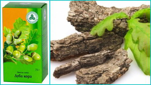 - Дубовая кора (измельченная) – 3 полные, с верхом, столовые ложки.