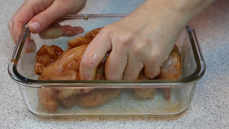 - Приправляем их солью и посыпаем приправой для курицы (по личному вкусу).