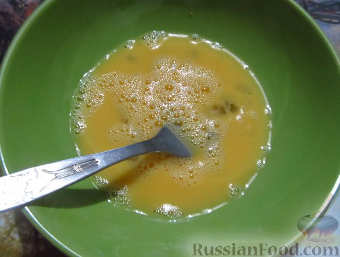 Сыр натрите на мелкой терке. В отдельной миске сделайте яичную смесь, вбзбейте яйца.