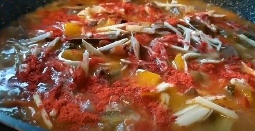 Добавьте чеснок на сковороду, посыпьте блюдо паприкой.
