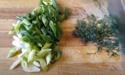 - Натереть сыр на крупную терку, зелень мелко нарезать.