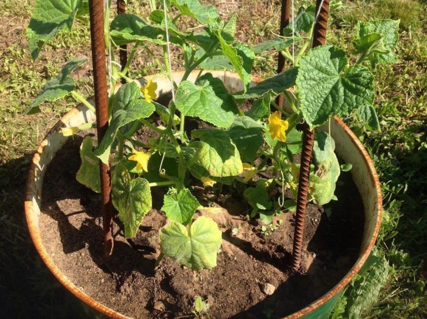 Как лучше подвязать огурцы каждый выбирает сам. Некоторые умельцы, изучая методы, как выращивать данную культуру, высаживают огурцы в бочку с землей. Вырастая, растение свисает с бочки вниз. Те, кто пробует этот метод, остаются довольны, так как он сокращает площадь, занимаемую огурцами и может применяться для выращивания огурцов в домашних условиях. О том, как выращивать огурцы в бочке читайте в отдельной статье.
