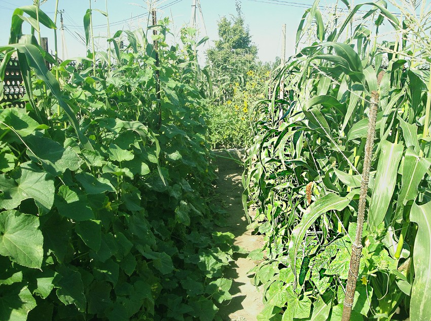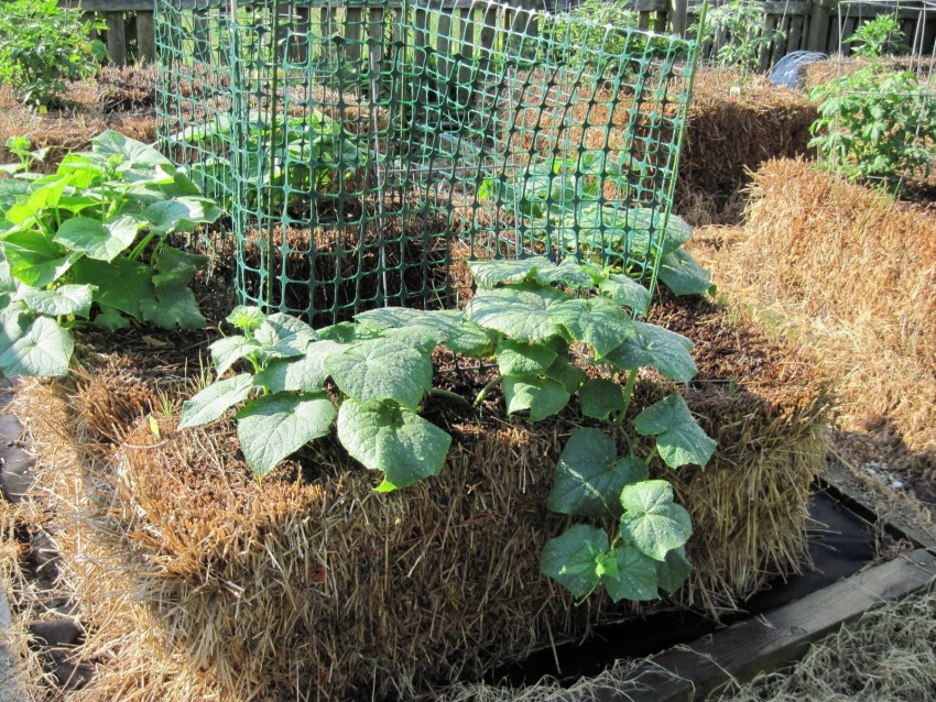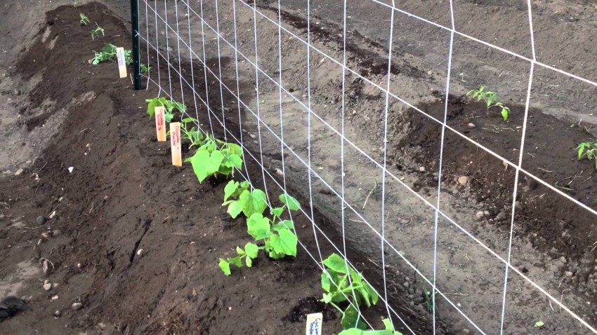 3. Рассадить рассаду огурцов вдоль забора. Кусты сами будут обвивать ограждения, ползя в верх. Единственный минус, по осени тяжело очистить забор от культуры.