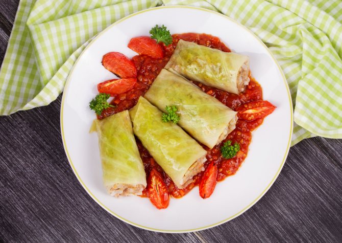 Перед подачей к столу уложить готовые голубцы на сковородку с хорошо разогретым растительным маслом, обжарить их до легкой румяности. В таком угощении можно заменить сосиски сардельками. Вкусно дополнить их сметаной или любым соусом на основе томатной пасты.
