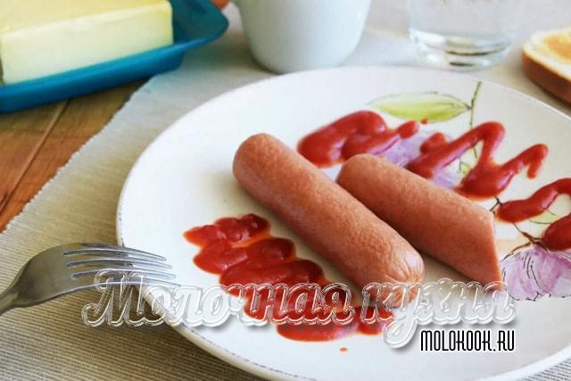 - Сосиски достают из воды и сразу же кладут на тарелку.