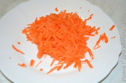 - Морковку очищаем от верхнего слоя, промываем и пропускаем через среднюю терку.