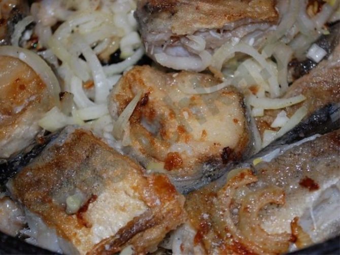 Минтай, потушенный с луком