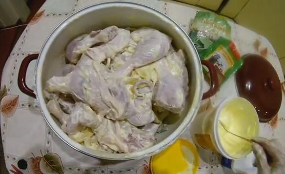 - Некоторые хозяйки считают, что куриному мясу (особенно филе) не хватает жирности, поэтому в маринад они добавляют 150 – 200 г жирного майонеза.