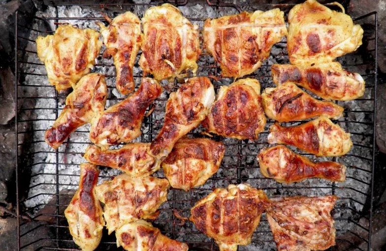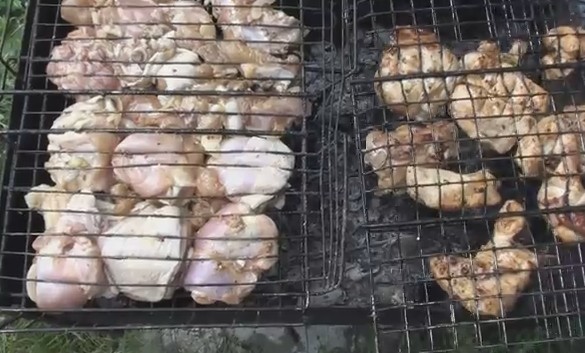 - Обжаривать куриные ножки на мангале 20 минут, не забывая переворачивать.