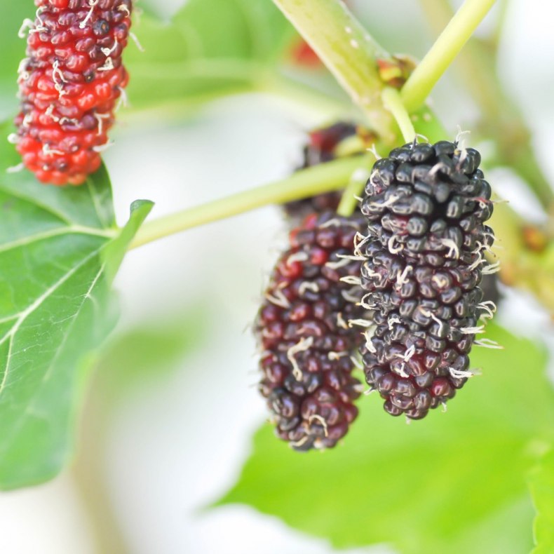 Родиной черной шелковицы считаются страны Юго-Восточной Азии, белой – Древний Китай. Существует три основных сорта ягод: белые или зеленоватые, розовые и сине-фиолетовые. Они поспевают в начале лета, одновременно с земляникой. Сочные плоды имеют освежающий вкус. Они с трудом поддаются транспортировке, поэтому наслаждаться урожаем могут жители тех регионов, где растут тутовые деревья.