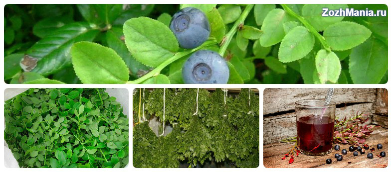 - 20 г сухих листьев смешивают с тремя большими ложками ягод черники;
