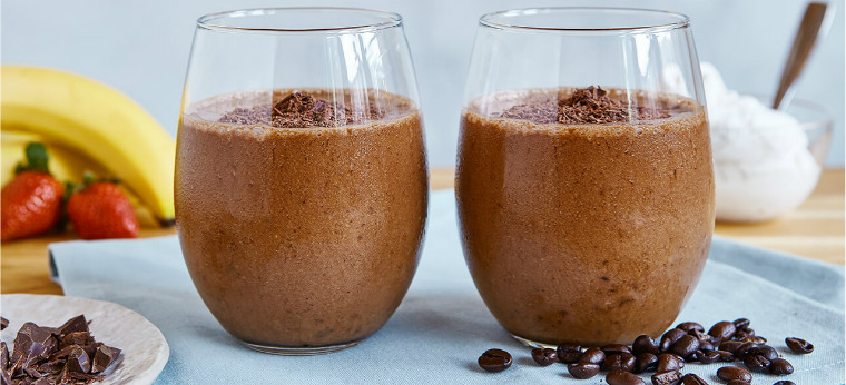 Для его приготовления перемешайте блендером 3 столовые ложки творога, 200 мл натурального йогурта, 50 мл свежесваренного охлажденного кофе, банан и столовую ложку кокосовой стружки. А если хотите придать коктейлю приятный шоколадный вкус (чем заменить сладости и сахар, вы узнаете тут), добавьте в смузи еще чайную ложку какао-порошка и немного корицы.