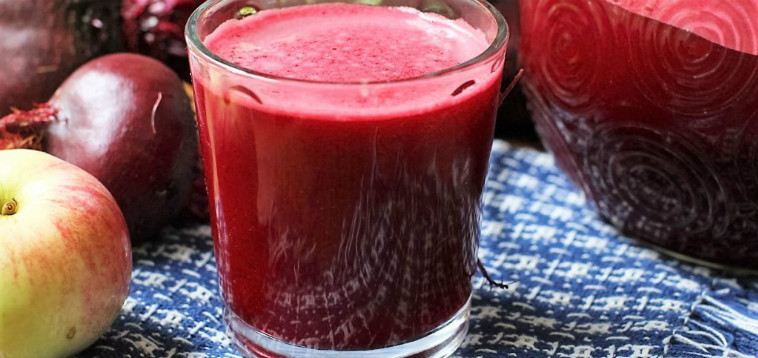 - 1 свекла, 1 средний огурец, 1 большой стебель сельдерея и 50 грамм белокочанной капусты, немного яблочного сока.