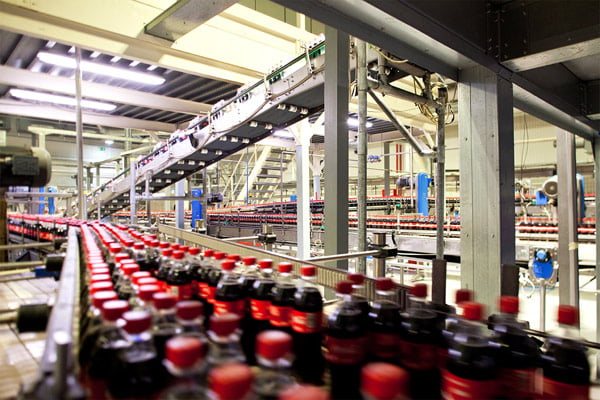 Обычный завод по производству Кока-Колы состоит из цеха многоступенчатой очистки воды, линии розлива в пластиковые или стеклянные бутылки и банки. Также на территории завода находятся склады, на которых хранятся крышечки, бутылки и банки.