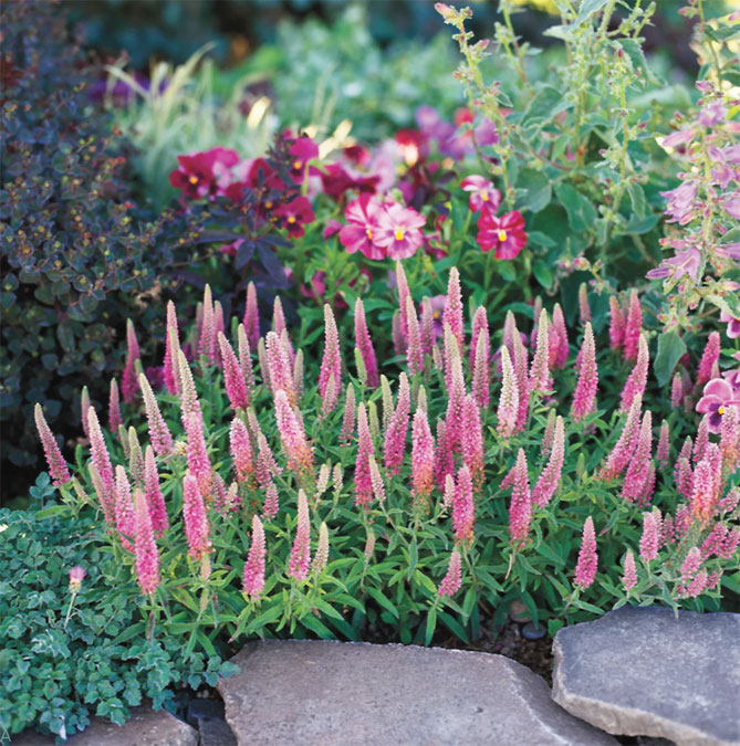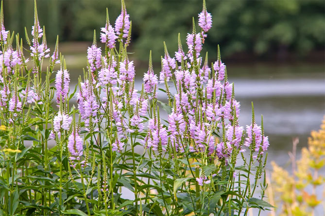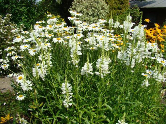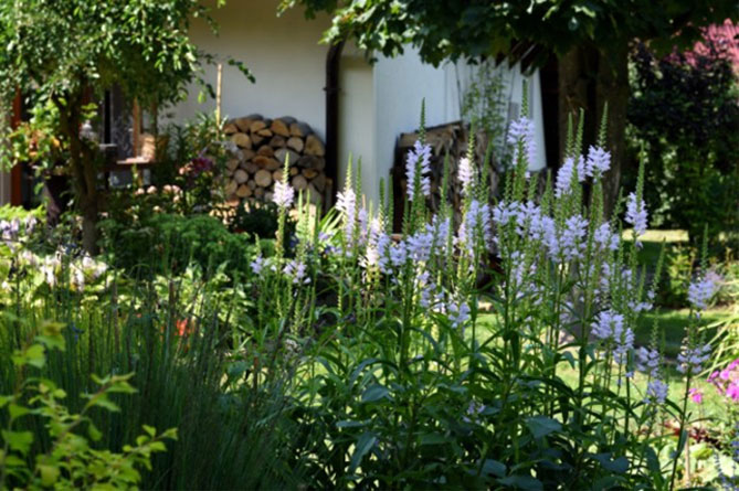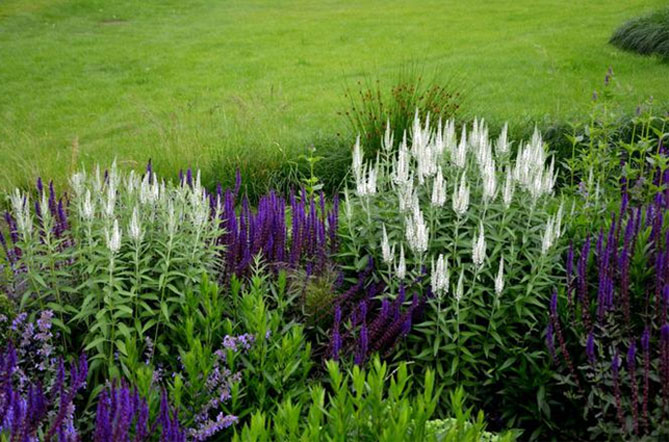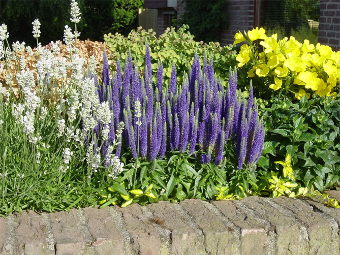 Высокие сорта вероники хорошо смотрятся в композициях с другими многолетниками:
