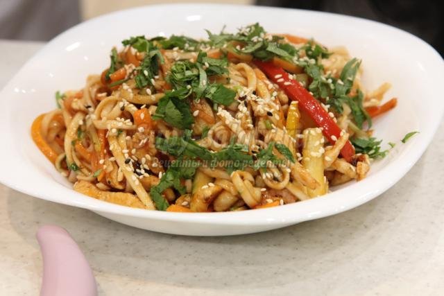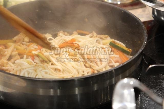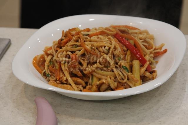 Лапша удон с овощами и курицей в домашних условиях