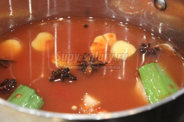 воды. Положите в воду палочку корицы, бадьям, душистый перец, нарезанный