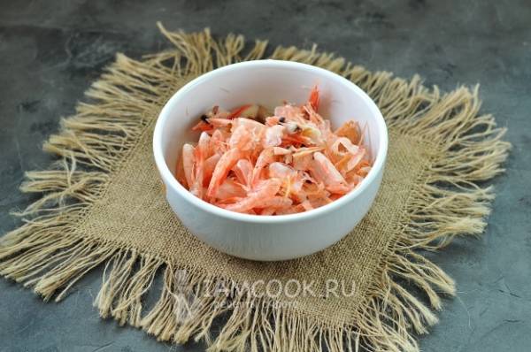 Почистите размороженных креветок.