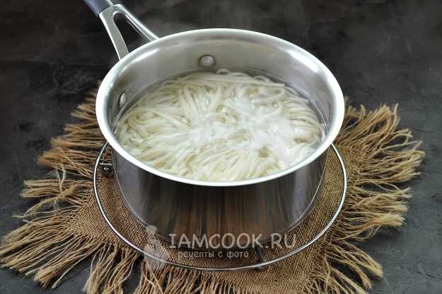 воды, немного её подсолите и, когда она закипит, отварите в неё лапшу Удон до