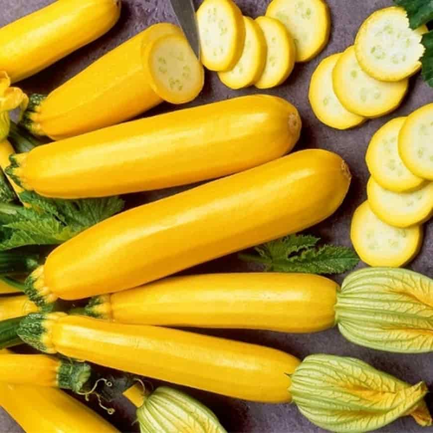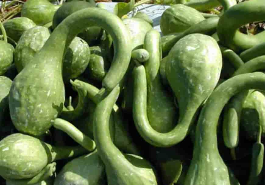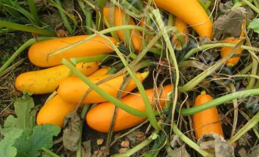 Кабачки вытянутой грушевидной формы ярко-желтого цвета с загнутым тонким основанием. Кожура их может быть гладкой или бородавчатой. Плотность мякоти зависит от сорта.