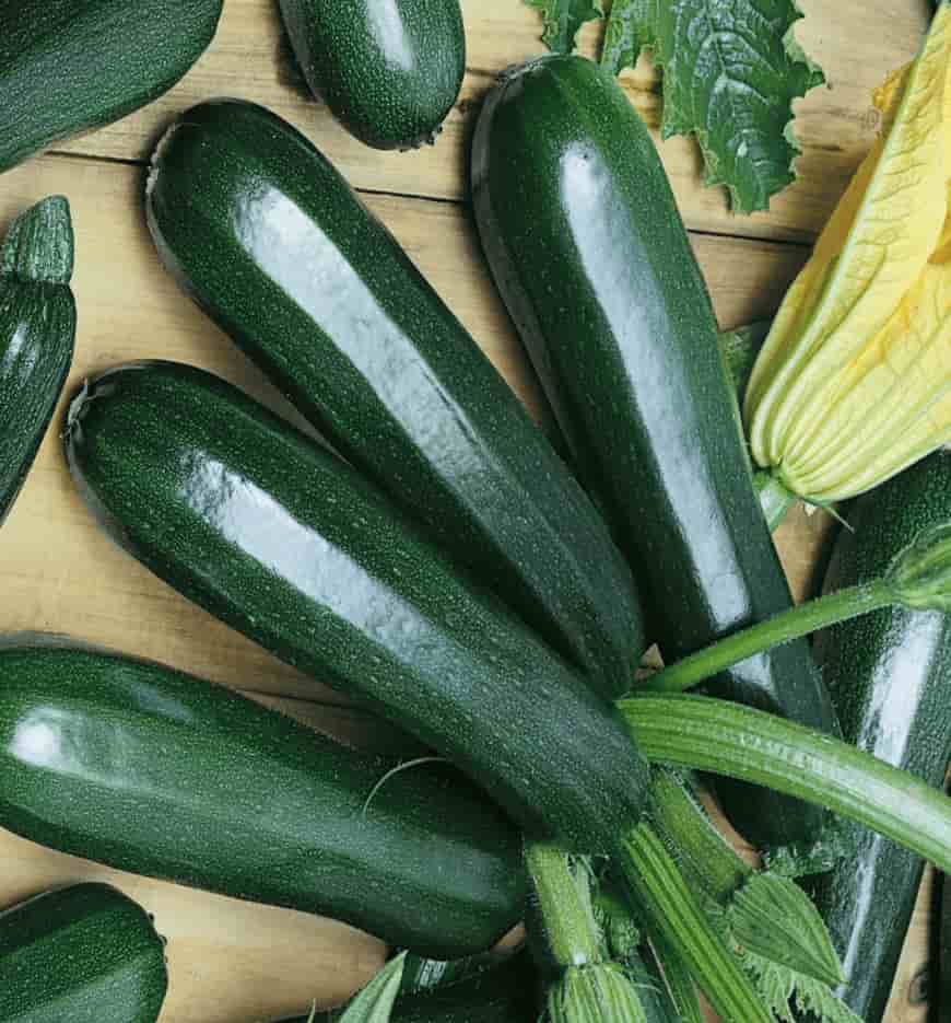Это — плоды желтого или темно-зеленого цвета, однотонные либо разбавленные не очень ровными полосками и вкраплениями более светлых оттенков. Форма они имеют продолговатую, на цуккини могут проглядываться легкие продольные грани, более выраженные к основанию. Мякоть у овоща средней плотности, вкусовые качества выражены не многим больше, чем у обычного кабачка, но не имеют сладкого привкуса.
