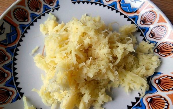 Очищаем свежий имбирь и натираем на мелкой терке.