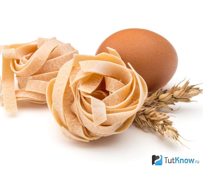Качественная яичная лапша может содержать: муку из твердых сортов пшеницы или грубого помола, яйца или яичный порошок, соль. Такой продукт хорошо держит форму и, даже если его переварить на 3-5 минут, не разваривается