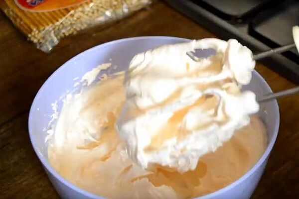 Рекомендуем использовать для окончательного взбивания продукта достаточно глубокую миску, поскольку воздушная масса увеличится в объеме практически в 3-4 раза.