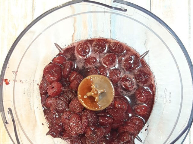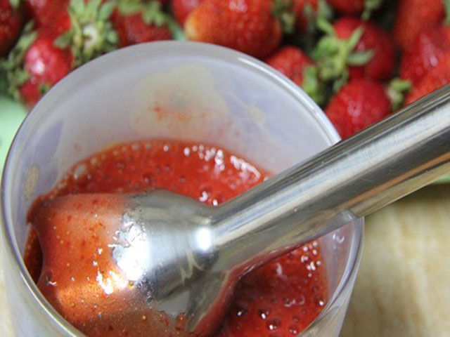 2. Ягоды клубники и малины хорошенько промыть и обсушить. Если же используете их из морозильной камеры, то сначала стоит их разморозить. Блендером или при помощи ложки и сита размять до однородной кашеобразной консистенции.