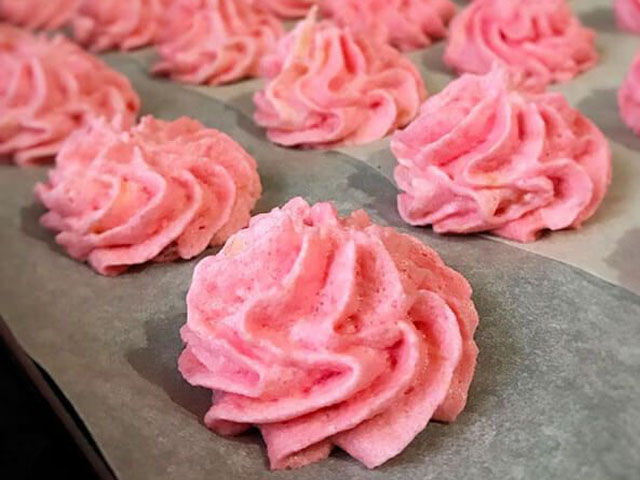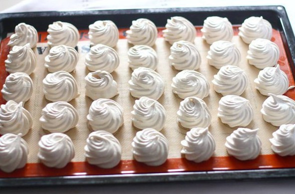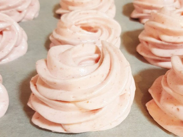 - Противень или большое плоское блюдо застилаем пергаментом, отсаживаем основу кондитерским мешочком и оставляем подсыхать на ночь. Вот такое быстрое приготовление.