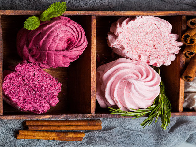 Можно поэкспериментировать, и приготовить цветной зефир.